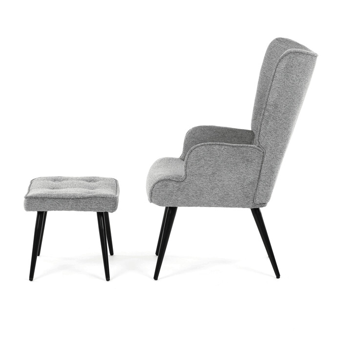 Relaxačné kreslo s podnožkou v sivej farbe je potiahnuté vodoodpudivou prémiovou látkou, ktorá uľahčuje údržbu a zvyšuje odolnosť proti poliatiu. Pevná kovová podnož v čiernom prevedení zabezpečuje stabilitu a dlhú životnosť. Kreslo má pohodlné čalúnené podrúčky a ergonomicky tvarované operadlo s decentným prešitím, ktoré podporuje relaxáciu a komfort pri sedení. Súčasťou je aj samostatný taburet so zhodným materiálom a dizajnom, ktorý umožňuje pohodlné opretie nôh. Tento set je vhodný na oddych v obývačke alebo pracovni, kde oceníte kombináciu funkčnosti a moderného vzhľadu. Taburet je o šírke 48cm, hĺbke 38cm a výške 36cm.