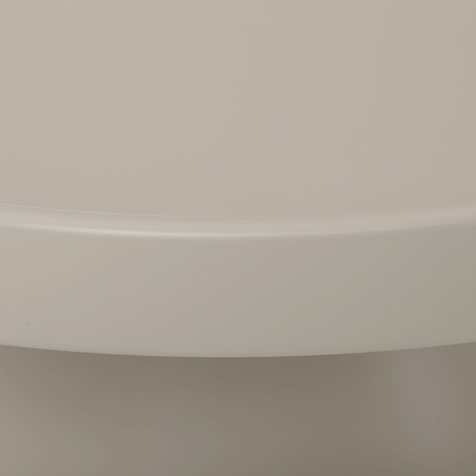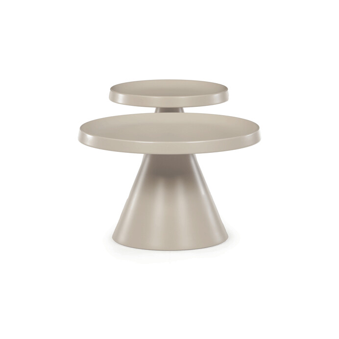 Sada dvoch konferenčných stolov v béžovom matnom prevedení ponúka kombináciu funkčnosti a moderného dizajnu. Obidve dosky aj nohy sú vyrobené z kovu, čo zabezpečuje stabilitu a dlhú životnosť, pričom povrchová úprava uľahčuje údržbu. Väčší stôl má priemer 68,5 cm a výšku 43,5 cm, menší potom priemer 49 cm a výšku 49,5 cm, čo umožňuje variabilné usporiadanie v priestore. Dekoratívne hrany dosiek podčiarkujú jednoduchý a čistý vzhľad vhodný do moderných interiérov. Pevná kovová podnož zaručuje stabilitu pri bežnom používaní.