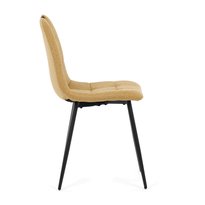 Jedálenská stolička s označením DCL-V2017 YEL2 kombinuje moderný dizajn s praktickými vlastnosťami. Sedák a operadlo sú potiahnuté žltou látkou, ktorá sa ľahko udržiava a je doplnená dizajnovým prešitím pre zvýraznenie estetického dojmu. Čierne matné kovové nohy zabezpečujú stabilitu a pevnosť celej stoličky, zatiaľ čo integrované madlo v hornej časti operadla uľahčuje manipuláciu a prenášanie. Stolička nemá podrúčky ani otočný mechanizmus, čo podporuje jednoduchosť a kompaktnosť. Vďaka kvalitnému spracovaniu a použitým materiálom je vhodná na každodenné použitie v jedálňach aj komerčných priestoroch.