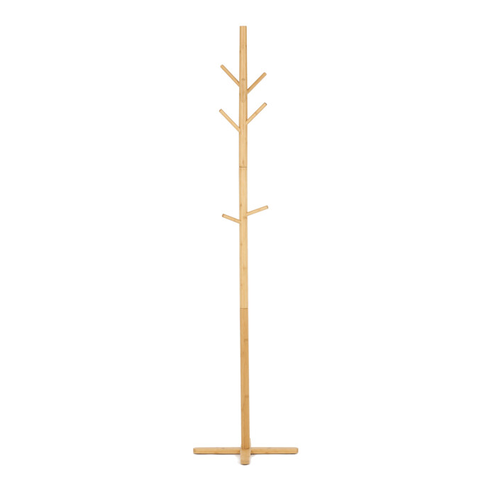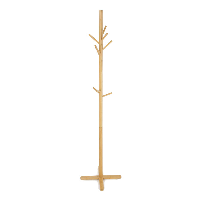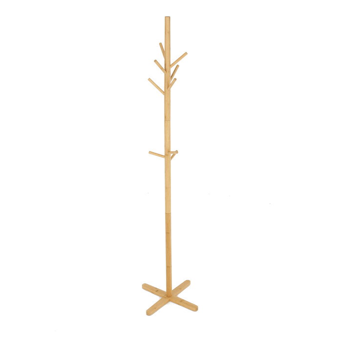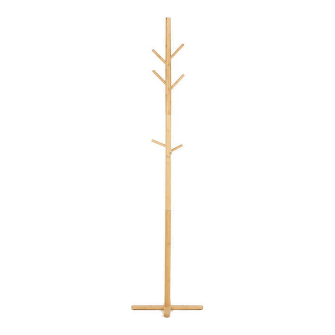 Stojanový vešiak z masívneho bambusu v prírodnom odtieni ponúka praktické a estetické riešenie na uloženie odevov a doplnkov. Jeho pevné prevedenie zabezpečuje stabilitu a dlhú životnosť, pričom bambusový materiál sa ľahko udržiava a pôsobí príjemne teplým dojmom. Vešiak je vybavený ôsmimi vetvami rôznych dĺžok, ktoré umožňujú efektívne rozloženie zavesených predmetov bez vzájomného prekrývania. Krížová základňa podporuje stabilitu aj pri väčšom zaťažení. Výška 180 cm poskytuje dostatok priestoru pre kabáty, šály alebo klobúky v domácnostiach aj kanceláriách.