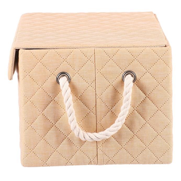Kôš látkový - krabica s uchami a vekom, nízky, béžový