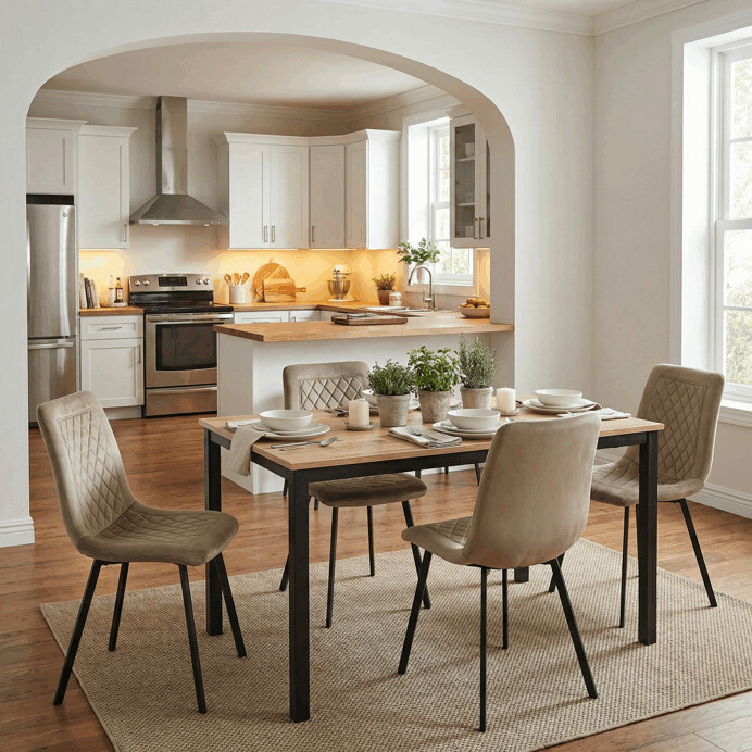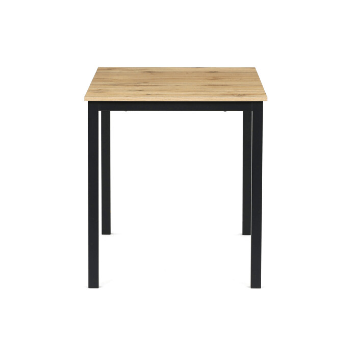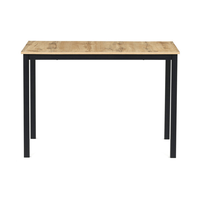 Jedálenský stôl s rozmermi 110x70x75 cm kombinuje dosku z MDF s dekorom divokého dubu a stabilnú kovovú podnož v čiernom matnom laku. Doska je navrhnutá pre jednoduchú údržbu a odolnosť voči bežnému opotrebeniu, čo zabezpečuje dlhodobú životnosť. Kovová podnož poskytuje pevnú a stabilnú oporu, ktorá udržiava stôl bezpečne na mieste počas používania. Moderný dizajn s prírodnými odtieňmi dreva sa hodí do rôznych interiérov, od jedálne po pracovný kút. Stôl nie je rozkladací, čo podčiarkuje jeho kompaktné a praktické prevedenie.