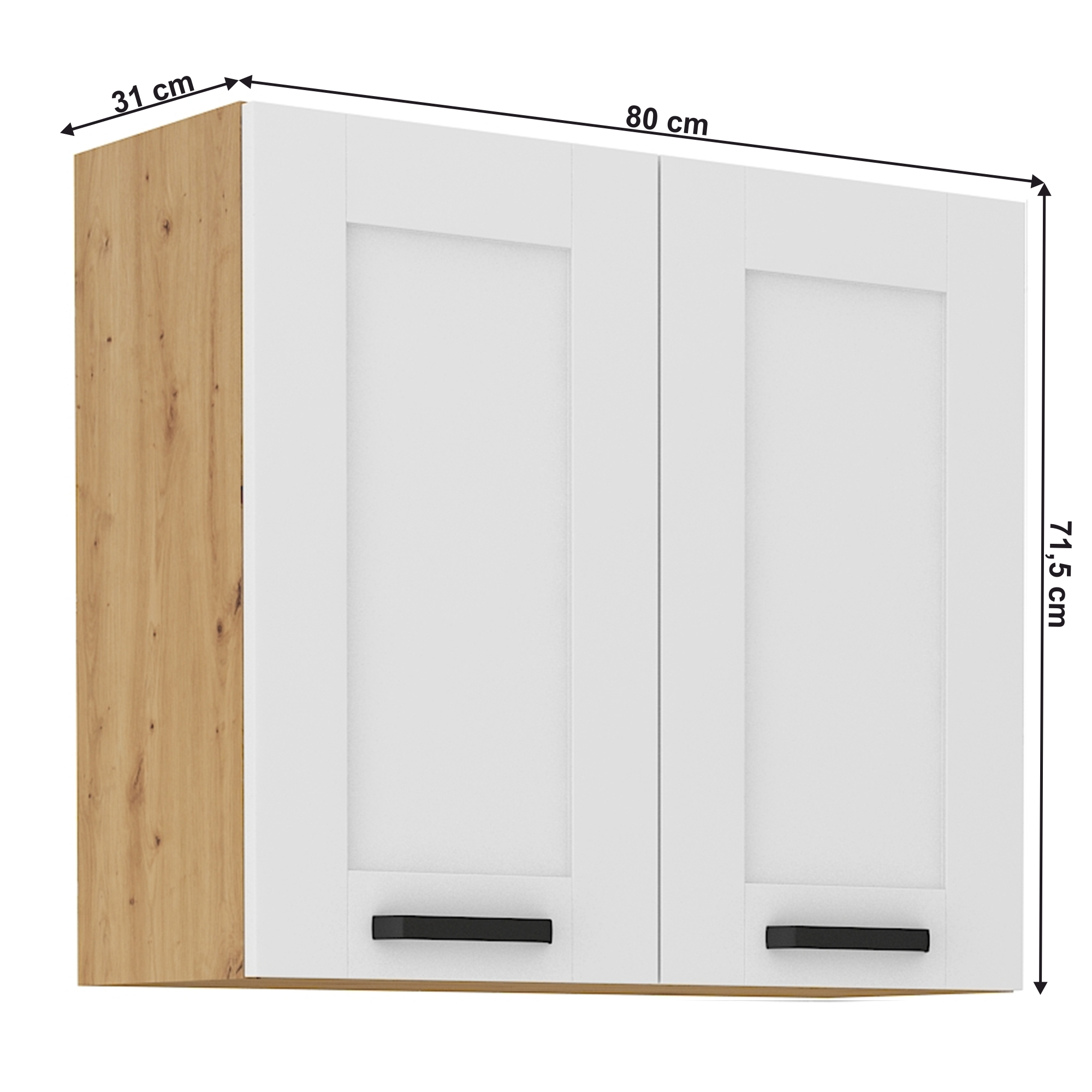Kondela Horná skrinka, biela/dub artisan, LULA 80 G-72 2 F