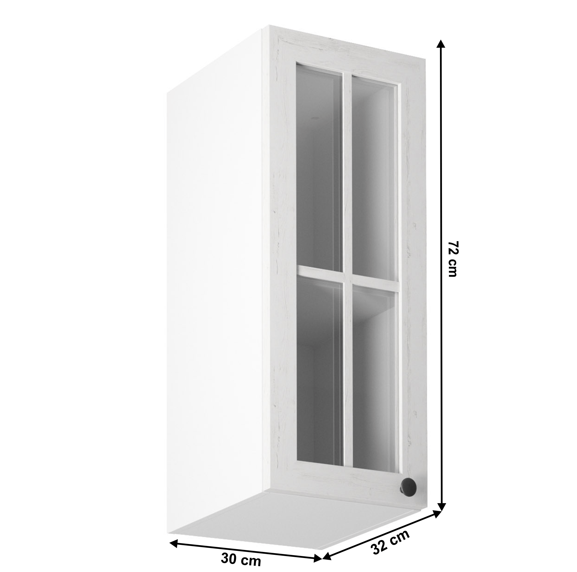 Kondela Horná skrinka so sklom G30S, ľavá, biela/sosna andersen, PROVANCE