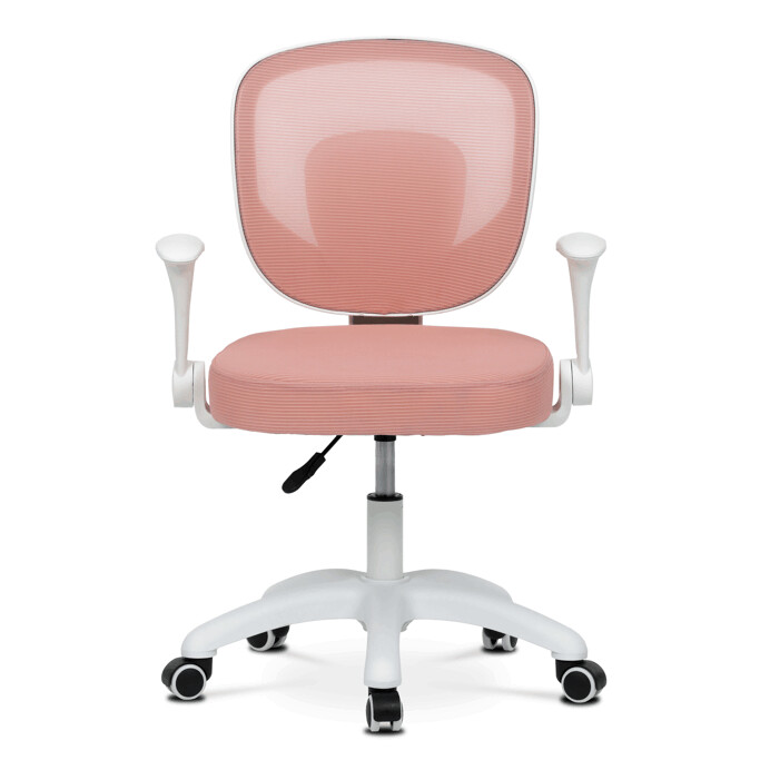 Detská stolička s ružovým sieťovinovým poťahom ponúka ľahké a vzdušné sedenie vhodné pre mladších používateľov. Biely plastový kríž zabezpečuje stabilitu a zároveň je odolný voči bežnému opotrebovaniu, zatiaľ čo kolieska sú prispôsobené na použitie na tvrdých podlahách, čo uľahčuje pohyb bez poškodenia povrchu. Odklápacie plastové podrúčky umožňujú jednoduché prispôsobenie priestoru okolo stoličky. Výškovo nastaviteľný mechanizmus umožňuje individuálne nastavenie sedáka podľa potreby dieťaťa, čím podporuje správnu ergonómiu počas práce alebo štúdia. Stolička je navrhnutá tak, aby kombinovala funkčnosť s príjemným dizajnom vhodným do detskej izby.