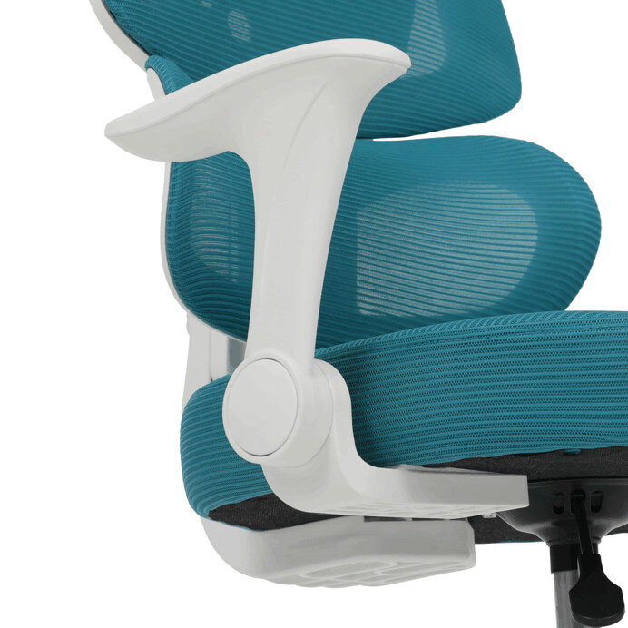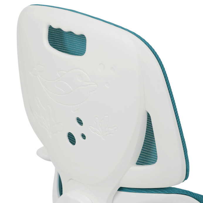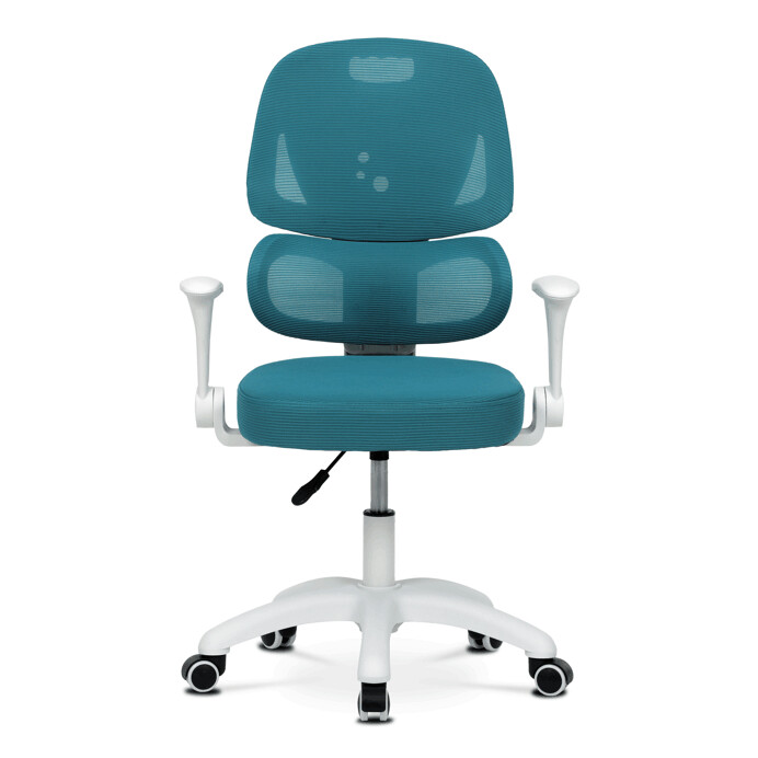 Detská stolička s modrou sieťovinou ponúka pohodlné a vzdušné sedenie vďaka priedušnému materiálu, ktorý podporuje cirkuláciu vzduchu. Operadlo je vybavené výškovo nastaviteľnou bedrovou opierkou, ktorá zabezpečuje správnu podporu spodnej časti chrbta, a výškovo nastaviteľným operadlom pre individuálne prispôsobenie. Odklápacie podrúčky umožňujú jednoduchší prístup k pracovnému priestoru a zároveň šetria miesto. Plastový biely kríž zaručuje stabilitu a ľahkosť celej stoličky, zatiaľ čo kolieska sú vhodné na tvrdé podlahy, čo uľahčuje pohyb po miestnosti. Výškovo nastaviteľný sedák umožňuje optimálne prispôsobenie výšky sedenia podľa potreby dieťaťa.