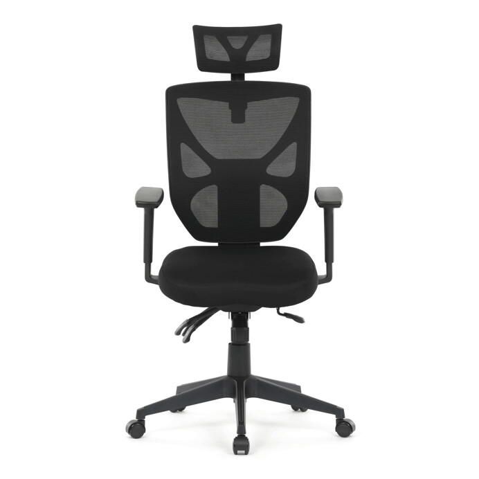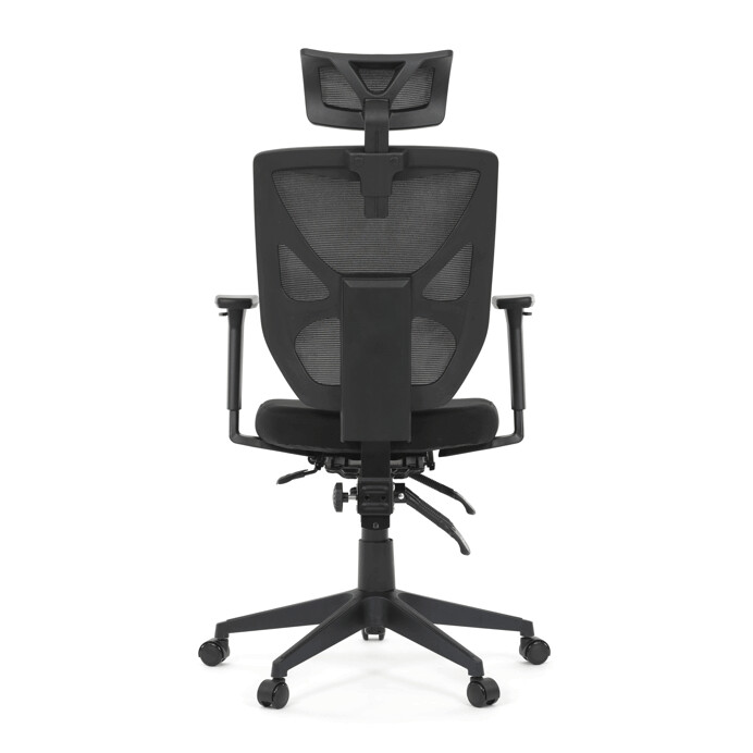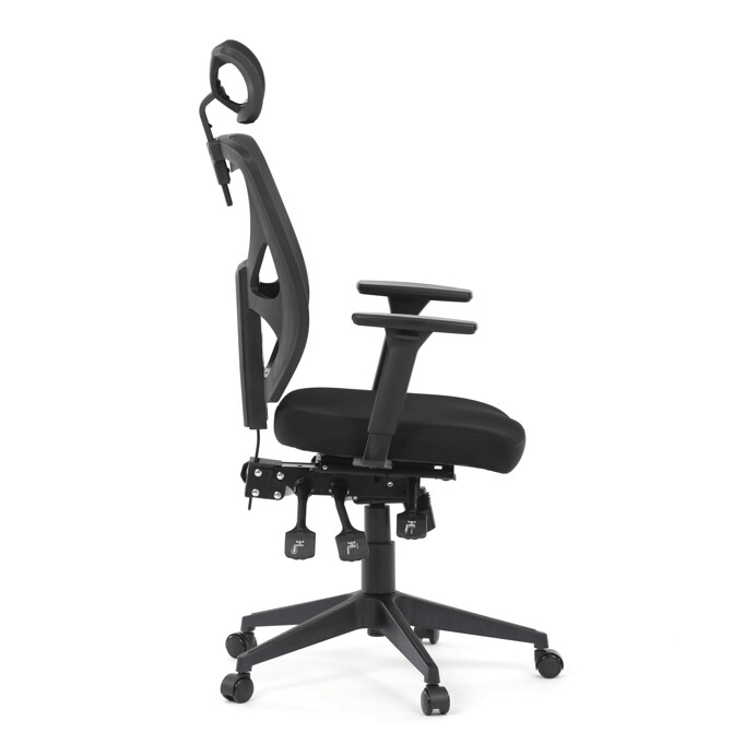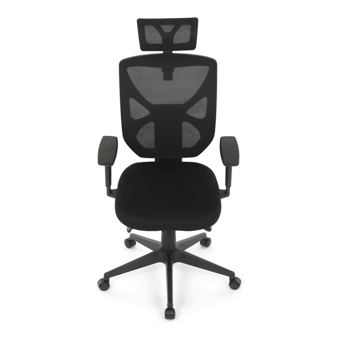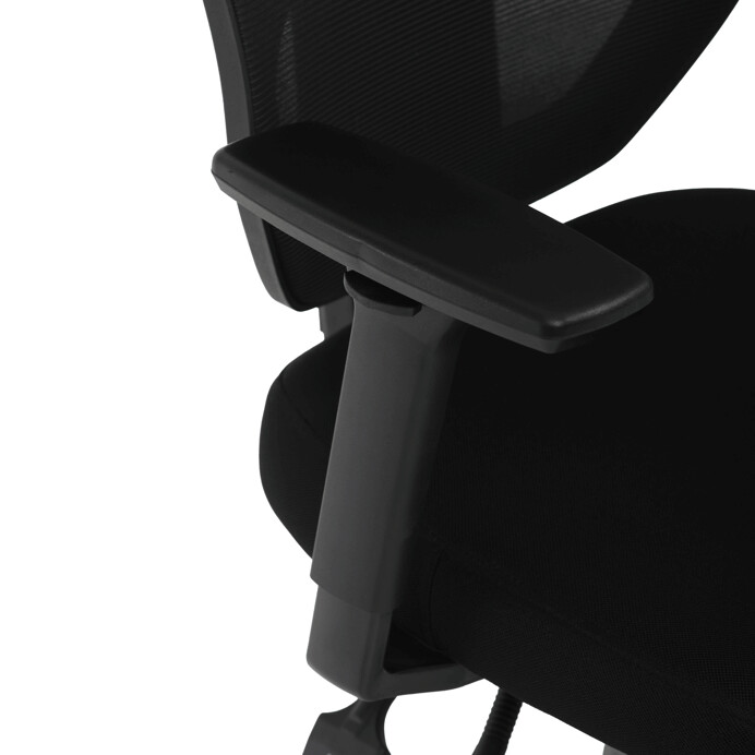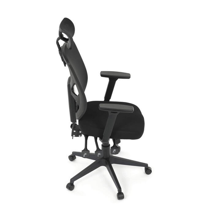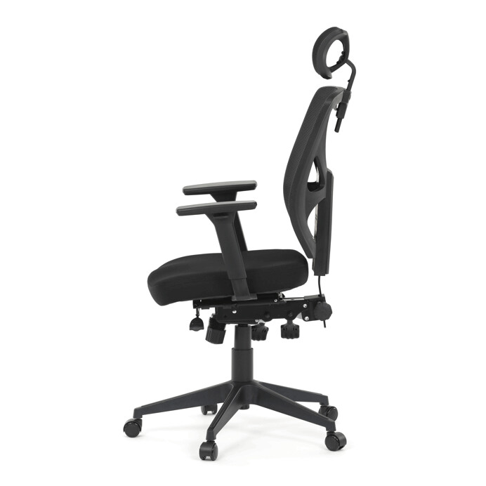 Kancelárska stolička s čiernym mesh poťahom ponúka vysoký komfort vďaka ergonomicky tvarovanému operadlu a integrovanej opierke hlavy, ktorá podporuje správne držanie krčnej chrbtice. Sedák je vybavený posuvnou funkciou pre individuálne nastavenie hĺbky sedenia, čo zvyšuje pohodlie pri dlhodobej práci. Asynchronný mechanizmus umožňuje plynulé naklápanie operadla s možnosťou aretácie v niekoľkých polohách, čím prispieva k ergonómii a podpore správneho držania tela. 3D podrúčky je možné nastaviť v troch smeroch – výškovo, do strán aj dopredu – pre maximálne prispôsobenie používateľovi. Plastový kríž zabezpečuje stabilitu a ľahkosť celej stoličky, ktorá je vhodná do kancelárskeho prostredia aj domácej pracovnej zóny.