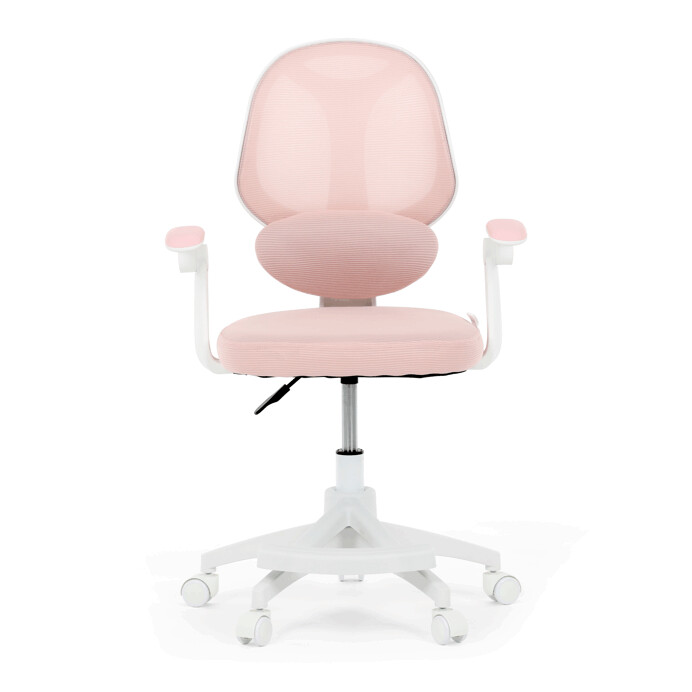 Detská kancelárska stolička v ružovej sieťovine ponúka pohodlné a zdravé sedenie vďaka ergonomicky tvarovanej bedrovej opierke, ktorá podporuje správne držanie chrbta. Výškovo nastaviteľný sedák umožňuje prispôsobenie výšky podľa potreby dieťaťa, zatiaľ čo odklápacie podrúčky zabezpečujú flexibilitu a jednoduché prispôsobenie priestoru. Plastový kríž s kolieskami zaručuje stabilitu a ľahkú mobilitu po rôznych typoch podláh. Súčasťou je aj praktická opierka nôh, ktorá prispieva k lepšiemu komfortu pri dlhšom sedení. Celkové prevedenie je navrhnuté s ohľadom na bezpečnosť a dlhú životnosť.
