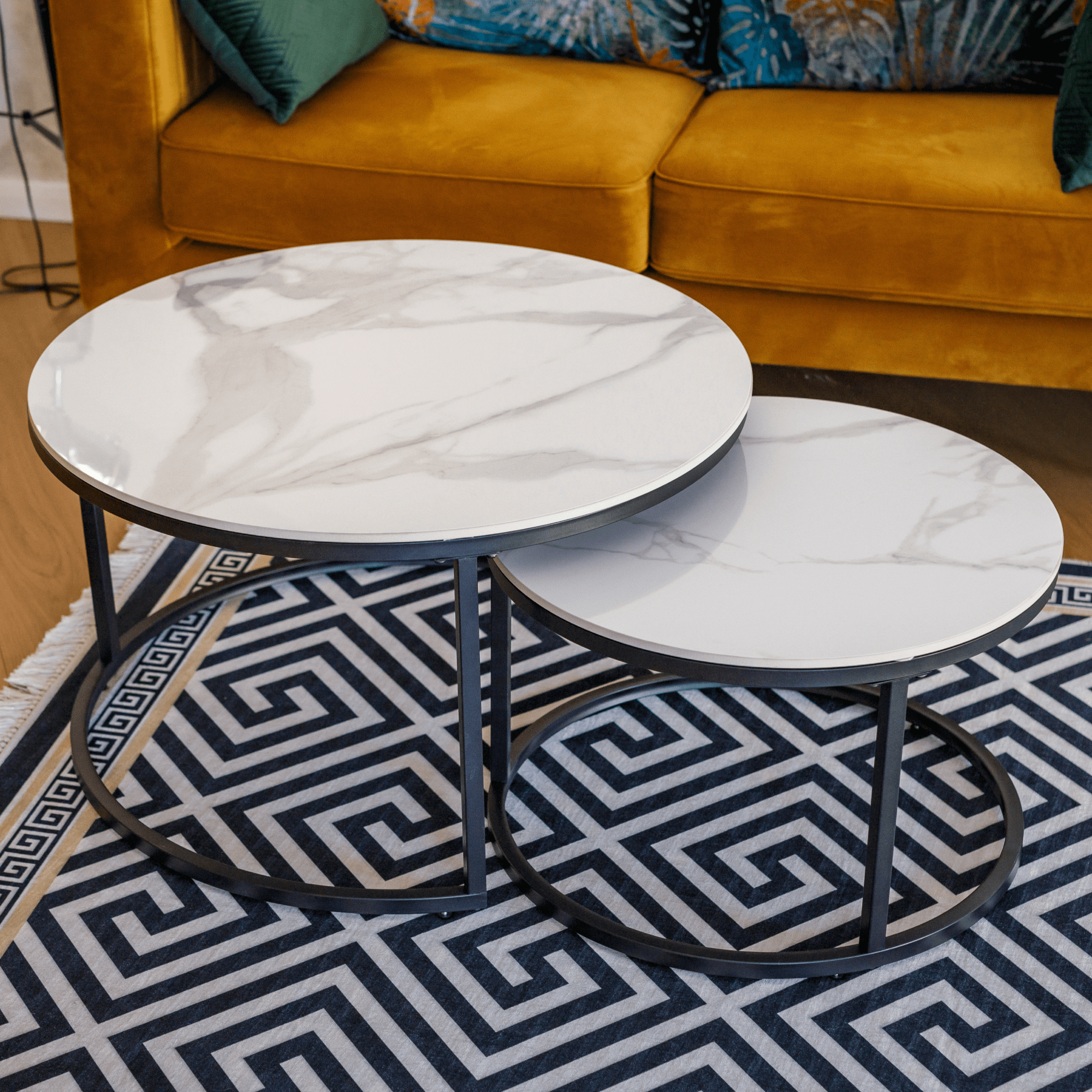 Kondela Konferenčné stolíky, set 2 ks, biely mramor/čierna, LASTRO NEW