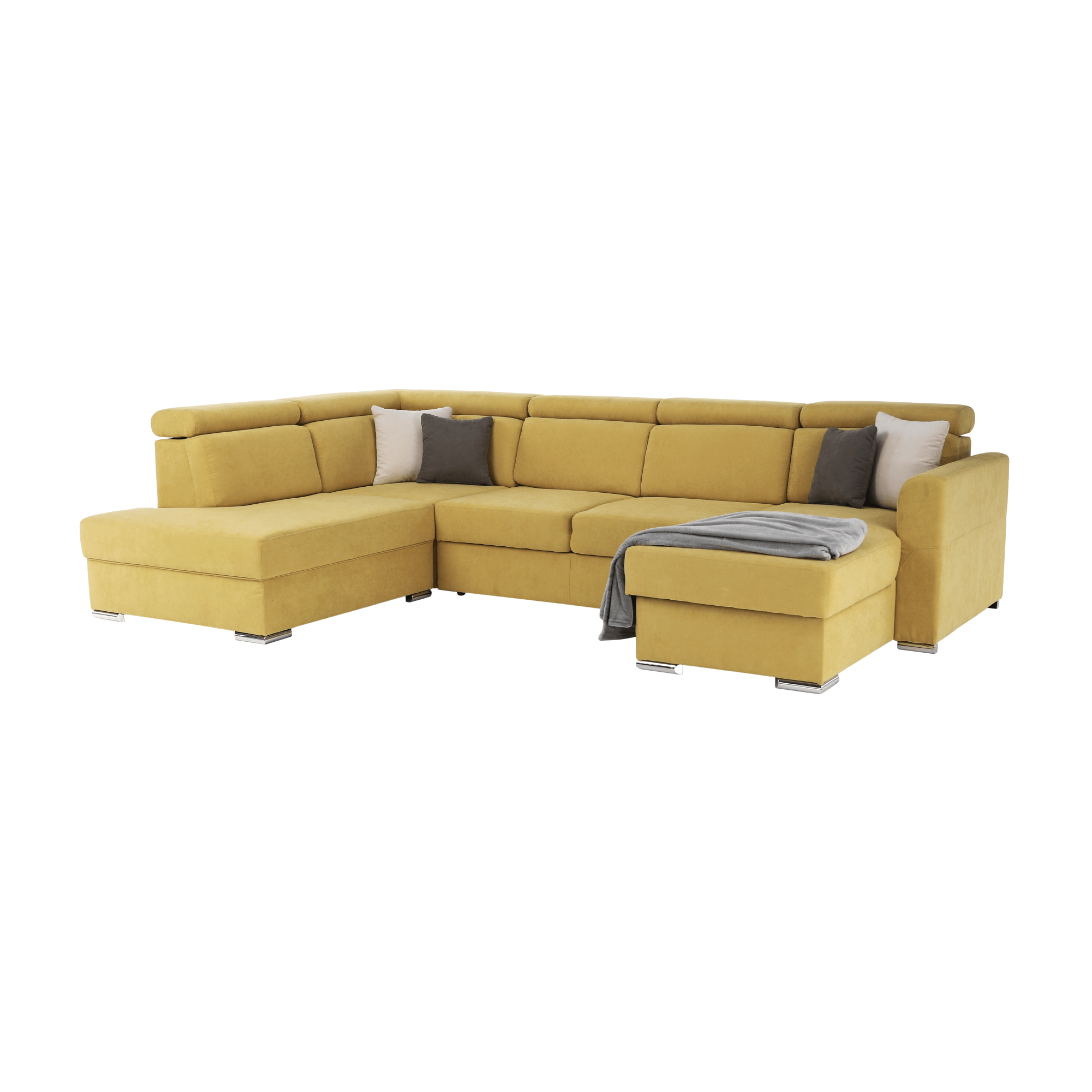 Kondela Luxusná sedacia súprava, žltá/hnedé vankúšiky, ľavá, MARIETA U
