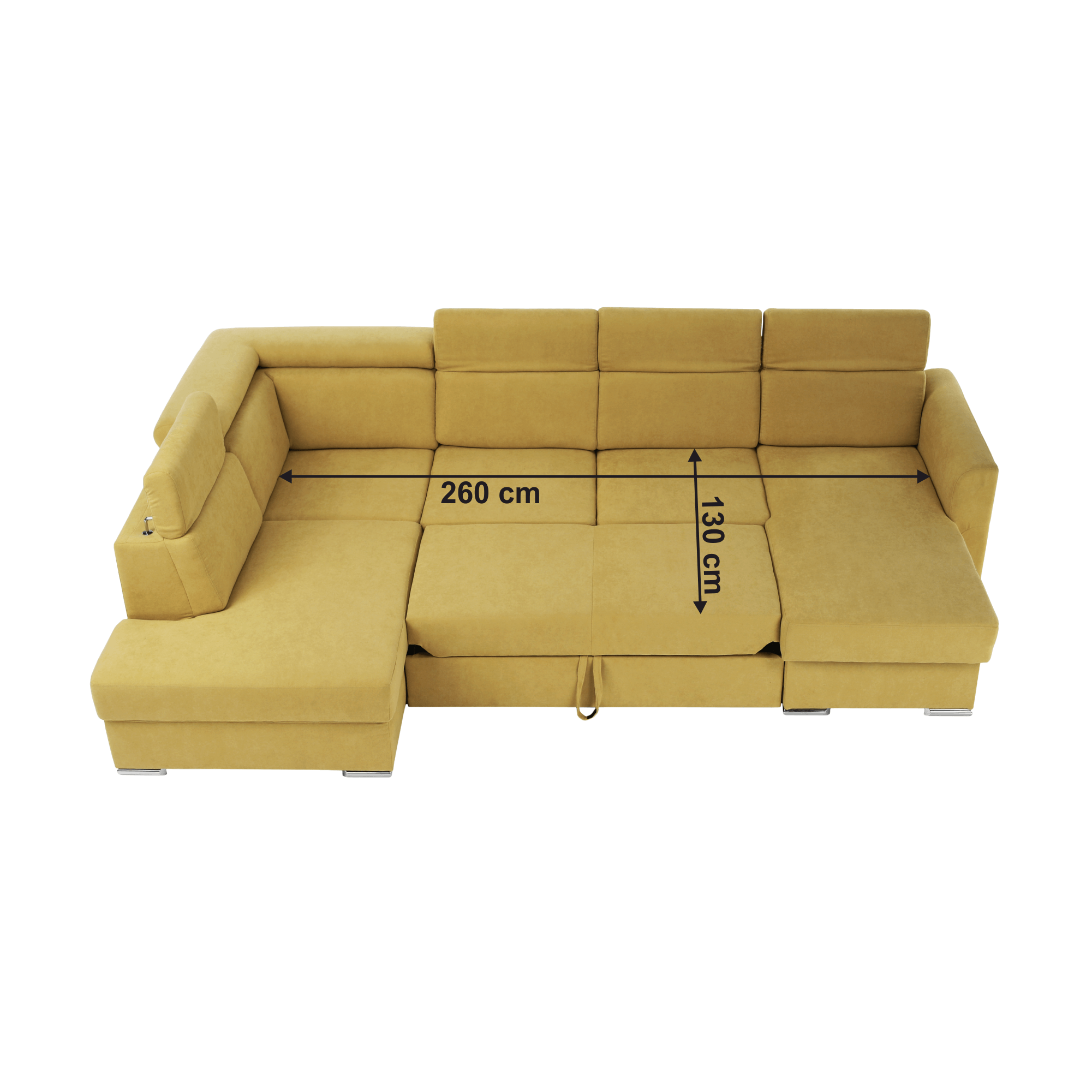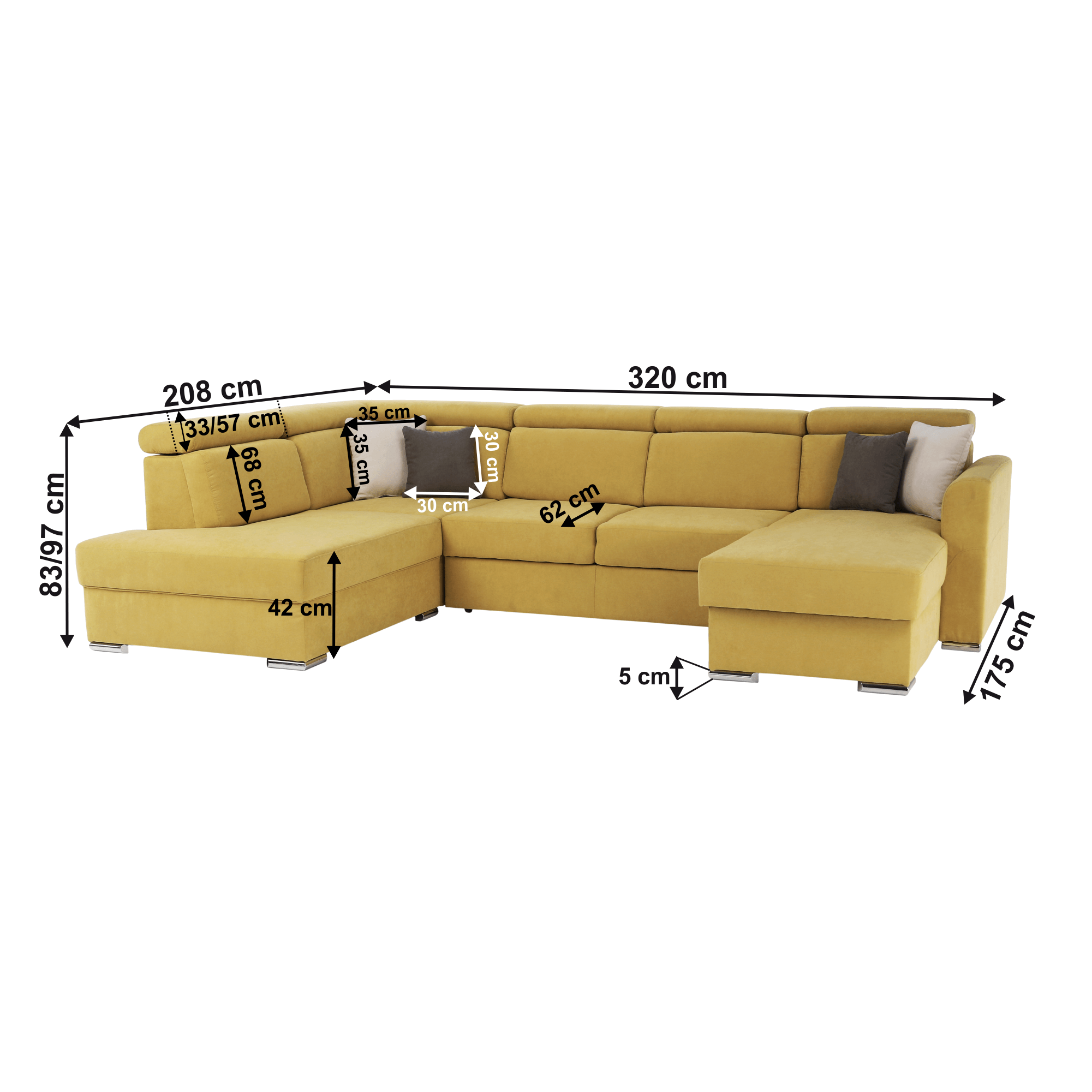 Rozmery: (ŠxHxV): 320x208-175x83-97 cm, plocha na spanie (ŠxD): 130x260cm