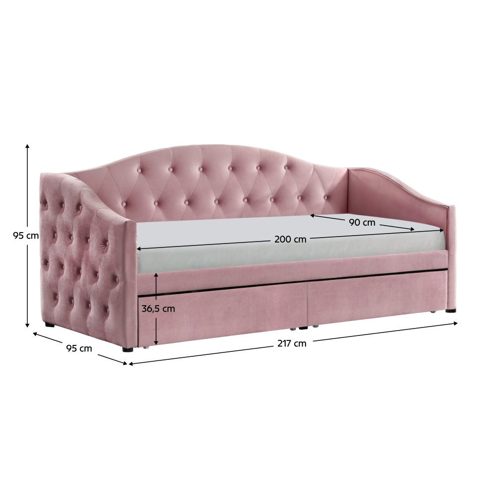 Kondela Posteľ s úložným priestorom, 90x200, ružová Velvet látka, ZASKA