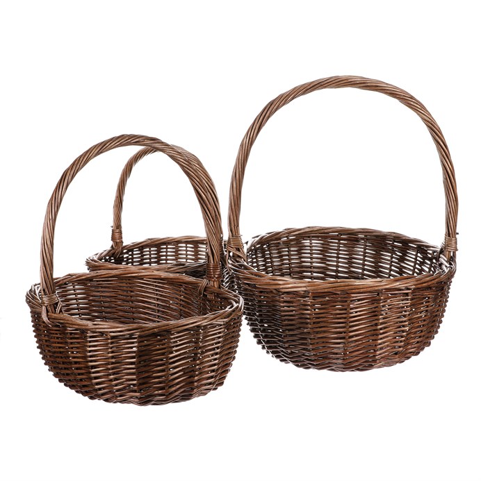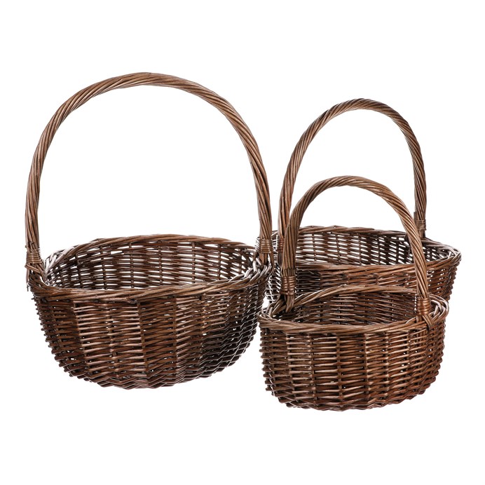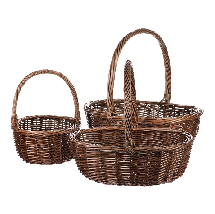 Kôš prútený - s uchom, hnedý, cena za sadu 3 ks