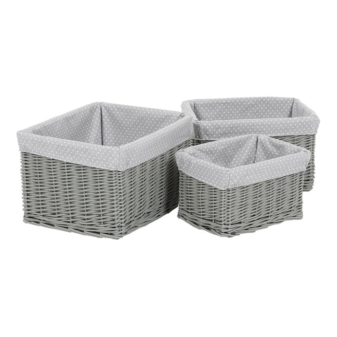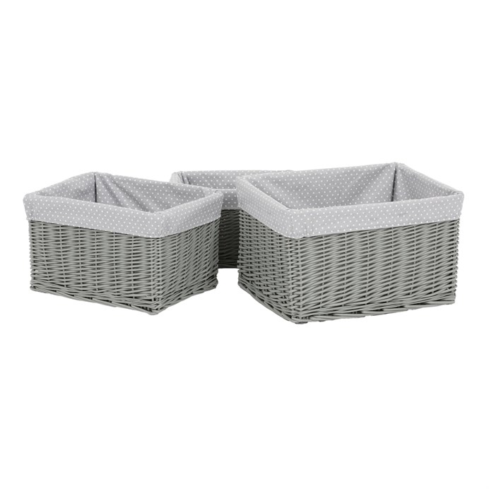 Kôš regálový - prútený, šedý s látkou, cena za sadu 3 ks