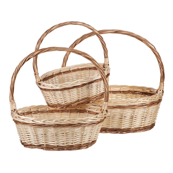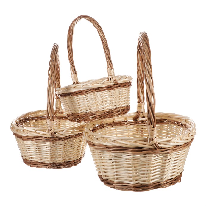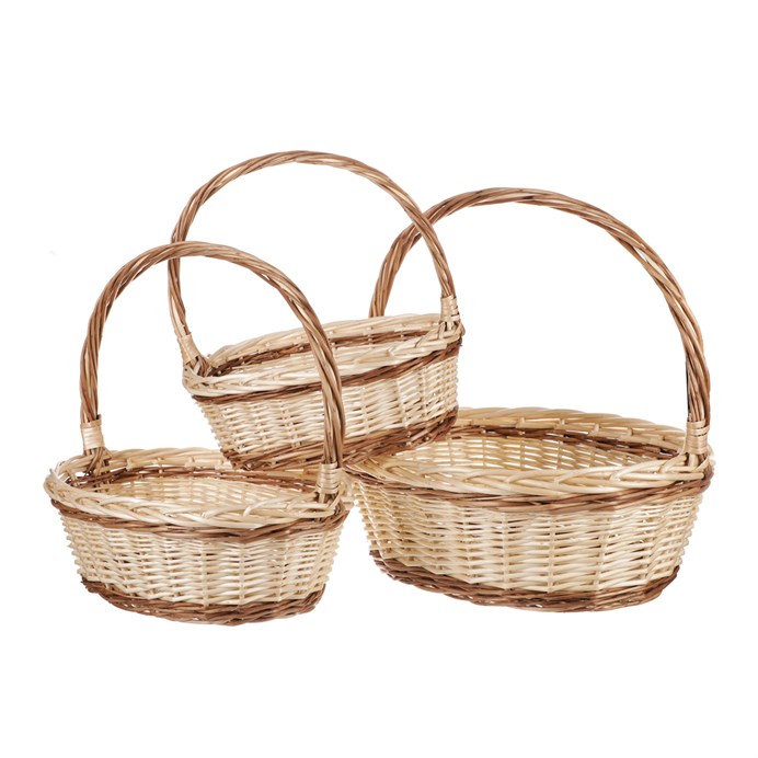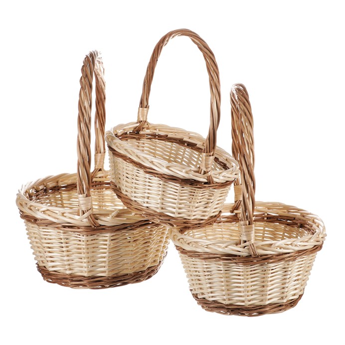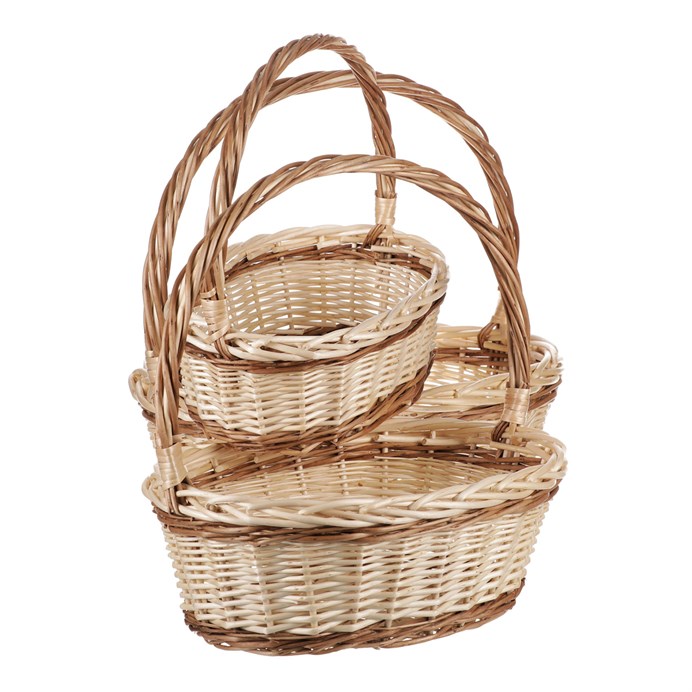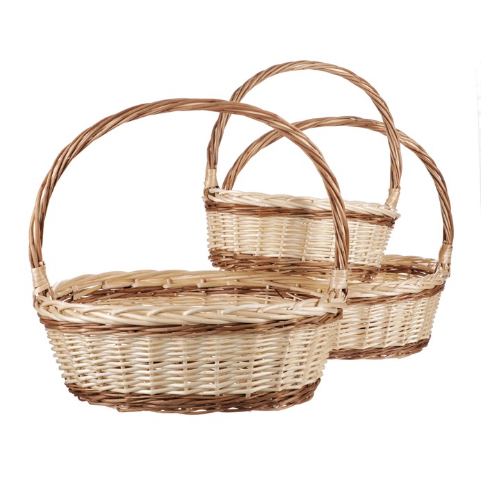 Kôš prútený - oválny, s uchom, prírodný, cena za sadu 3 ks