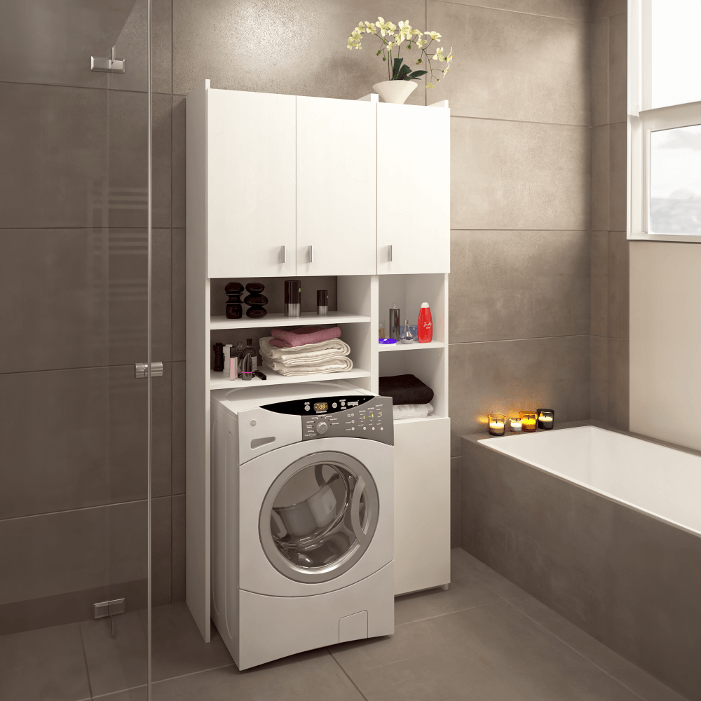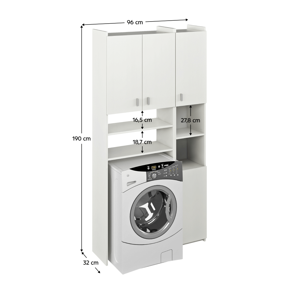 Kondela Skrinka nad práčku s regálom, biela, MIRALI