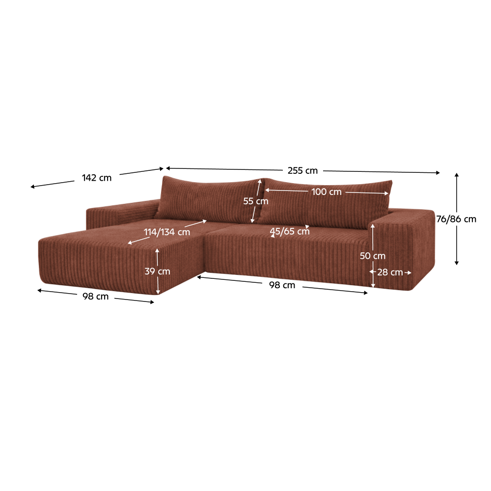 Rozmery (ŠxHxV): 255x142x76/86 cm
