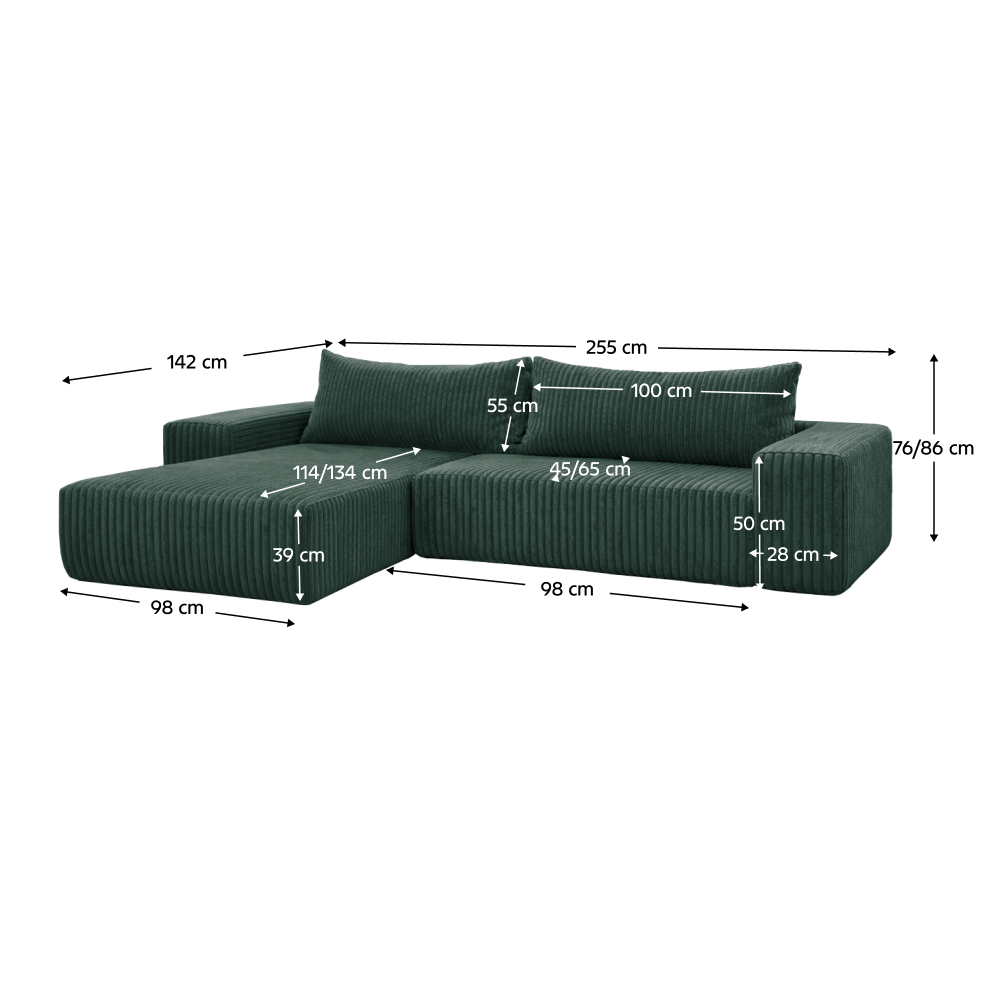 Rozmery (ŠxHxV): 255x142x76/86 cm